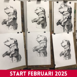 Op de Wackers Academie hebben we een breed aanbod van cursussen op het gebied van figuratief tekenen, schilderen en boetseren. Een cursus duurt gemiddeld zo’n 16 tot 20 weken.